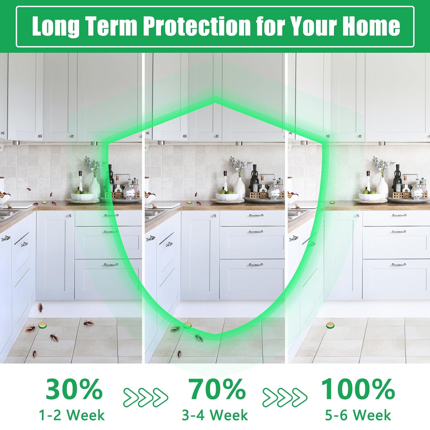 RoachShield™ Natural Cockroach Gel offers powerful, long-lasting protection against cockroach infestations. With just one application, it wipes out entire colonies within hours and keeps your home protected for up to 6 months.
